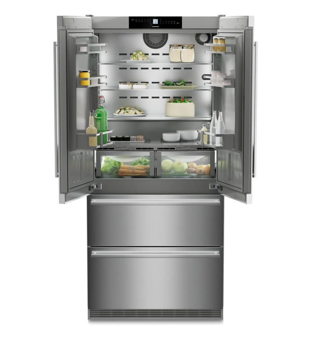 Wykończenie ze stali nierdzewnej i eleganckie oświetlenie LED podkreślają nowoczesny charakter wnętrza, a panel MagicEye z dotykowym sterowaniem zapewnia intuicyjną obsługę.